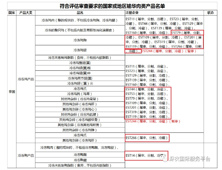 1、新增泰国9家禽肉企业自2019年10月22日及以后生产的符合中国要求的冷冻禽肉产品输华。